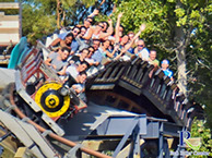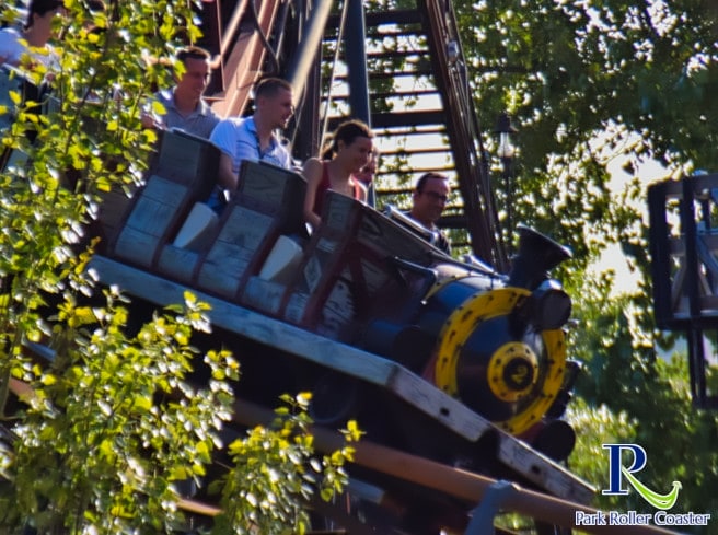 L'usine Arrow, construite pour l'ouverture du parc en 1995, est en effet relativement inhabituelle et longue. Un total de trois vies vous ouvrira l'appétit pour un long trajet dans les prairies hispano-mexicaines. Le point culminant est déjà le début, car directement à partir de la gare, il passe dans une petite chute qui accélère le train et mène à un long virage à