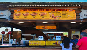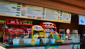 Point de restauration rapide offrant sandwichs chauds et boissons.