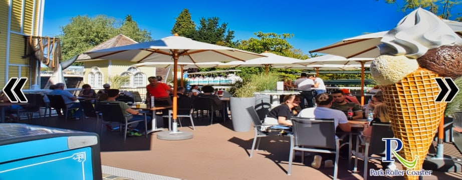 Prélassez-vous sur la superbe terrasse et découvrez nos nouvelles gaufres à bulles ainsi que notre sélection de cafés Dallmayr.