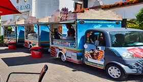 Sur la place devant Huracan. Vous pour manger las les 3 kiosques. Cafés, Crêpes, Gaufres, Glaces, Boisons fraîche et Sandwich....