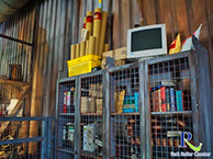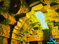 Voilà pour l'histoire des 5 millions de nouveautés. Mais avant de rencontrer le cœur de l'installation, le visiteur se promène d'abord à travers le Camp de base à la surface. Ceci est montré dans la file d'attente avec des objets d'excavation typiques. Les feux de camp, les jeeps et de nombreux autres objets thématiques peuvent être trouvés ici. Ensuite, c'est la première station intérieure pour aller à un petit site d'excavation et enfin, avec quelques instructions de sécurité par vidéo, vous pouvez vous rendre à l'ascenseur qui emmène les visiteurs au temple. 30 Personnes s'y installent. Vous pouvez dire directement que 700m n'est pas un coup de sucre, car le trajet en ascenseur est d'autant plus long. Soit dit en passant, vous n'êtes pas transporté verticalement ici, comme il semble. Au lieu de cela, vous conduisez quelques mètres sur le côté et sortez de la même porte, donc l'illusiongrâce aux effets dans l'ascenseur, est transporté de manière convaincante. Une fois en bas, le visiteur atterrit directement à l'entrée du temple, qui est également "protégé" par des statues cracheurs de feu et fera certainement passer le temps d'attente facilement. Nous continuons à pied vers le Tunnel Skeleton et Crystal Cave avant de nous arrêter soudainement et nous devons monter dans les véhicules de recherche.