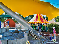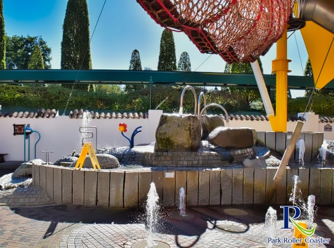 L'eau colorée scintille sur le terrain d'aventure au soleil dans la zone à thème espagnol. Les glissades sur tube vous invitent à profiter d'une belle glisse et dans le labyrinthe, vous pouvez vous défouler longuement.