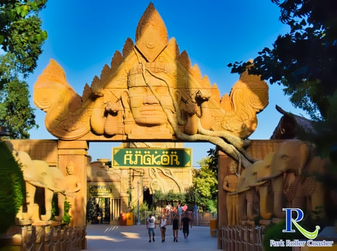 À terme, toutefois, cet écart devrait se réduire et cela seulement 2 ans après la construction de l'Hypercoaster Shambhala. Ici aussi, ils ont choisi un thème asiatique et ont attaqué le temple cambodgien Angkor Wat, qui est à la base de la thématisation des batailles Splash simplement "Angkor" mentionnées. L'entrée du tout nouveau quartier d'Angkor se trouve juste en dessous de Shambhala sur le chemin menant à Sesame Street Land. Comme pour