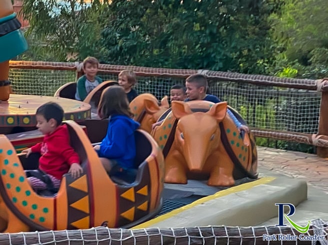 C'est une attraction très douce où les enfants montent dans des gondoles en forme de tatou et volent.