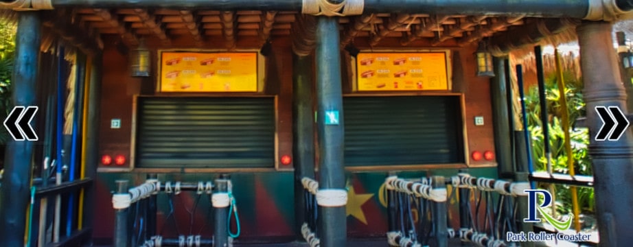 Des collations et des rafraîchissements en Polynésie se trouvent juste à côté de l’entrée de l’attraction Ice Age. Sa structure recrée une architecture typique des îles et si l'on regarde l'une de ses colonnes, on voit qu'il s'agit d'un canon de navire.