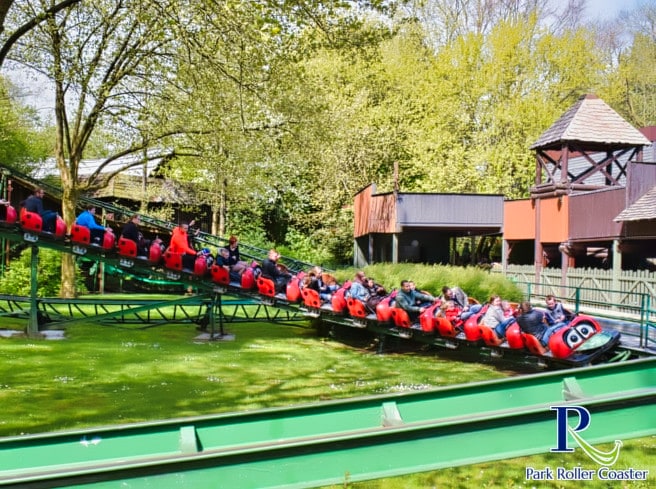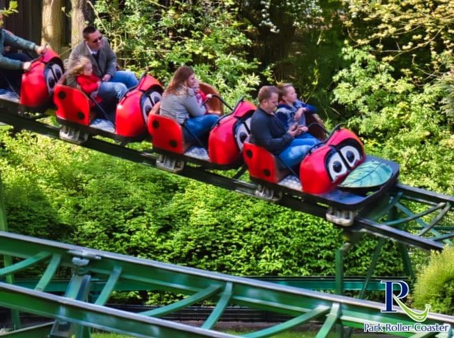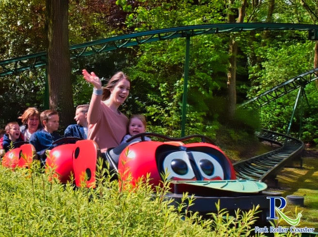 La Coccinelle (Pour ladybug ferroviaire) est intégré dans la zone Wild West et entraîne un cours oscillant sur plusieurs collines.