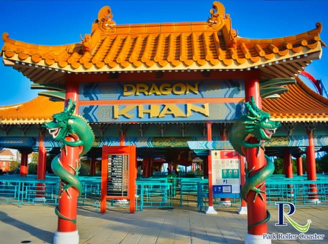 Dragon Khan est situé sur une colline du thème chinois et forme une ligne d'horizon avec Shambhala, qui n'existe pas très souvent en Europe. Le circuit en boucle de Bolliger & Mabillard était autrefois détenteur du record du monde de renversement de trajectoire et offre toujours un parcours époustouflant sur plus de 1200 mètres, même après plus de deux décennies d’exploitation. L'installation entièrement rouge a été ouverte en 1995 et cadre bien avec le thème.