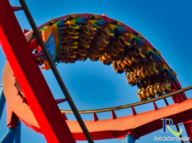 Dragon Khan ne peut pas cacher son âge de cette façon. Bien que la configuration nette reste incontestable, même du point de vue actuel, le train n’enroule pas ses compteurs comme d’habitude de B & M avec une douceur stoïque. C'est plutôt le même sentiment que dans le Vekoma Looping Coaster des années 80 (par exemple, Big Loop - Heide Park Resort ou Python - Efteling). Le train serpente d’inversion en inversion et subit quelques mouvements de bégaiement, mais tous restent dans le cadre et varient également en fonction du train et de l’heure.