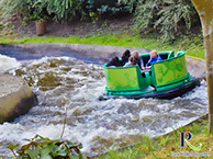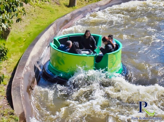 À première vue, El Rio Grande ressemble à Rapid Rivers d'Intamin. Mais le système de chargement inhabituel est déjà perceptible à la gare. Le chargement et le déchargement ne se font pas sur une grande plate-forme tournante, mais sur un escalator surdimensionné, sur lequel les bateaux parcourent environ 30m. La plus grande différence, cependant, réside dans les bateaux qui, contrairement à Intamin, ne sont pas constitués d'une seule pièce, mais de quatre segments de cercle maintenus ensemble au milieu et sur les côtés. En conséquence, l'eau peut également s'écouler entre ces segments, ce qui contribue de manière significative au facteur d'humidité de la piste. Dans des conditions défavorables (bateau plein), vous pouvez vous mouiller jusqu'au pantalon. Néanmoins, conduisez certainement.
