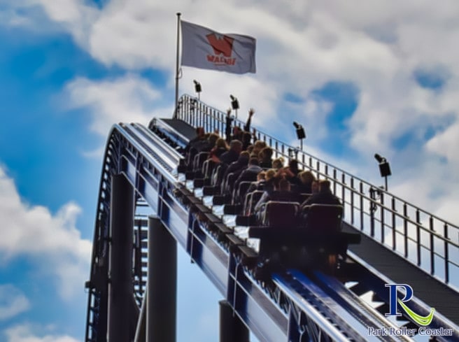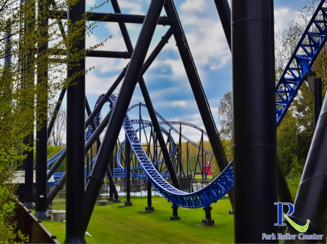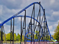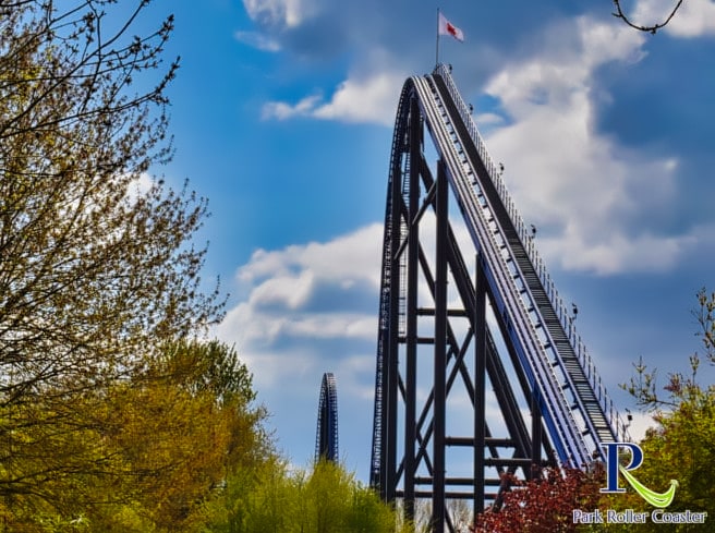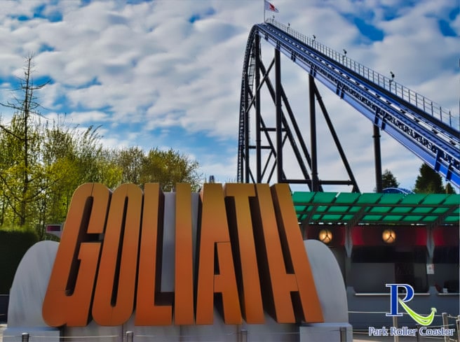 Goliath était nouveau en 2002 dans ce qui était alors Six Flags Holland et est clairement visible depuis le parking. L'Intamin Megacoaster d'une hauteur de 46 m est inférieur aux grandes montagnes russes des États-Unis ou Expedition GeForce, mais il obtient de bons résultats en termes de plaisir de conduite. La hauteur n'est pas tout. Goliath est mal situé dans sa propre petite zone derrière Xpress et El Condor. C'est la plus haute montagne russe du Benelux et l'une des rares hypercoasters d'Europe. La voie est vert fluo et les supports sont violets, les 2 trains sont peints en conséquence - l'un vert, l'autre violet.