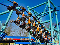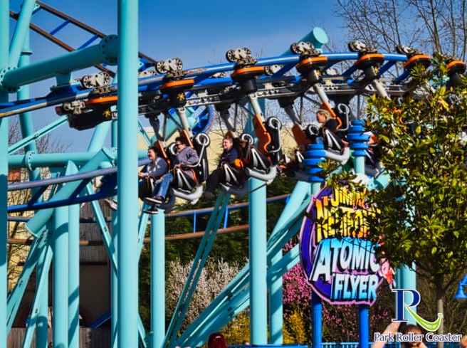 Si les montagnes russes à suspension MP-Express sont trop rapides et trop lourdes, les montagnes russes Atomic Flyer de Jimmy Neutron leur conviennent parfaitement, car ici, vous vous accrochez également sous le rail et vous balancez même sur le côté. Le Suspended Family Coaster de Vekoma fait partie du Nickland et est déjà clairement visible depuis le parking principal. Bien que la hauteur de 13 mètres ne soit pas exactement impressionnante, cela est plus que suffisant pour une famille /des montagnes russes pour enfants et un voyage montre que les adultes peuvent également s'amuser dans les montagnes russes de Jimmy Neutron.