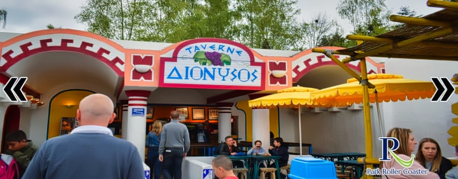 Dionysos reçoit gaiement tous les Gaulois qui souhaitent faire une pause pendant leurs folles aventures. Sandwiches, glaces, boissons, il y a tout ce qu'il faut pour repartir de plus belle !