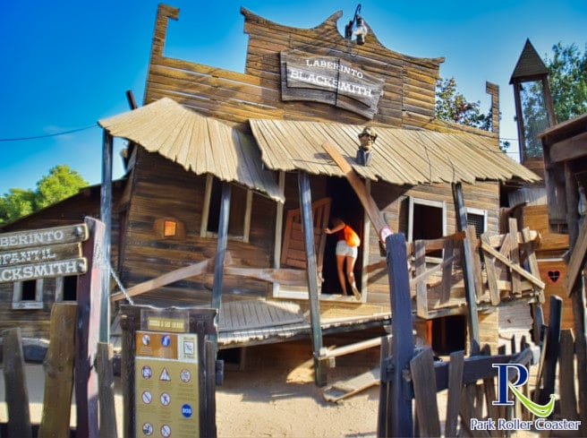 ette attraction est un labyrinthe en bois qui simule une maison, a des couloirs étroits, des montées et des descentes adaptées aux enfants.