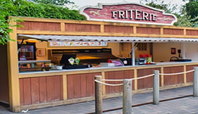 Près de la fontaine de l'entrée principale. Rien ne vaut un bon cornet de frites belges!!