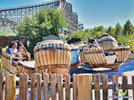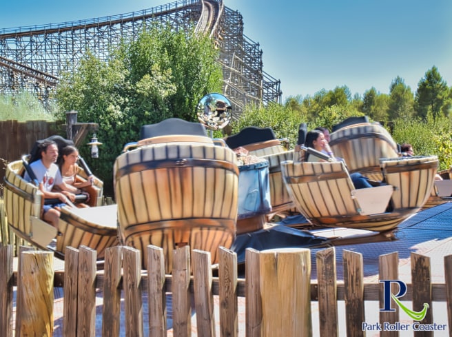 Les gondoles de breakdance de Huss dans la partie ouest du Parque Warner sont habillées comme des wagons miniers en fuite. Cette attraction a une quantité surprenante de piquant pour une version parc d’attractions de ce type.