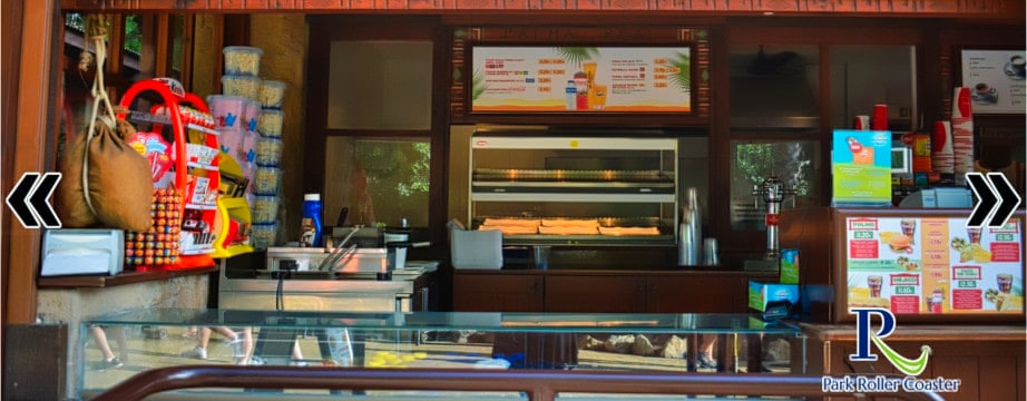 Point de restauration rapide où vous trouverez hamburgers, salades et boissons.