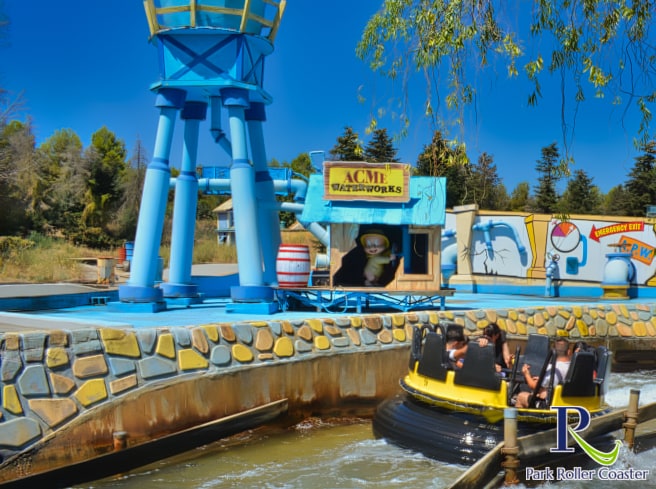 La rivière rapide La Fabrica ACME est cachée derrière un bâtiment de Cartoon Village et n'est pas très facile à repérer immédiatement si vous ne connaissez pas votre chemin, car seule la dernière partie du parcours est visible de l'extérieur. Vous traversez la file d’attente sur laquelle passe le tapis roulant de l’usine pour entrer. Ici, vous montez à bord de l'un des bateaux Intamin pouvant accueillir 9 personnes et plongez dans les eaux de l'usine. Mais attention : TOUT LE MONDE est mouillé ici !