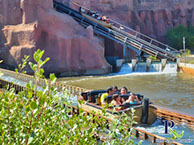 Rio Bravo est une balade en eau vive au thème magnifique qui traverse un petit village de l'ouest et une mine. Il se trouve en face du Coaster Express et, avec son éclaboussement final de 22 m de haut, attire le regard des passants de l'extérieur. Contrairement aux promenades en eaux vives « normales », dans cet Intamin Log Flume, vous êtes assis deux personnes d'affilée et n'y êtes retenus que par une sangle Velcro.