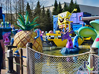 Spongebob Splash Bash est à côté des montagnes russes familiales Le Flyer atomique de Jimmy Neutron l'attraction principale de NICKLAND, ouverte en 2007. Comme son nom l'indique, cette expansion de la zone pour enfants concerne les personnalités populaires de la chaîne pour enfants NICK. Plus à ce sujet dans notre rapport détaillé sur NICKLAND.