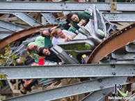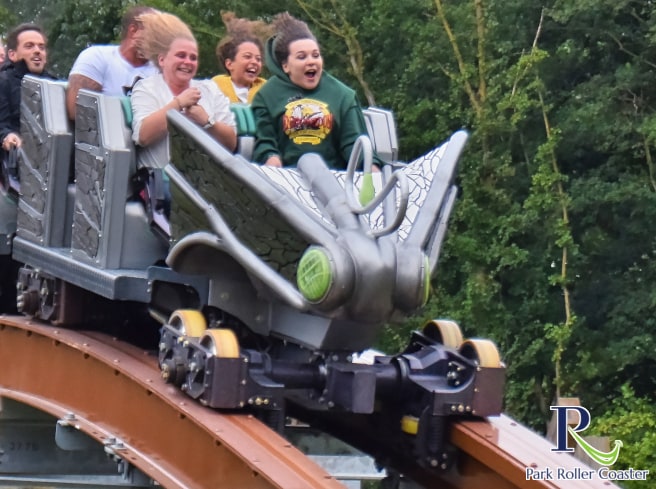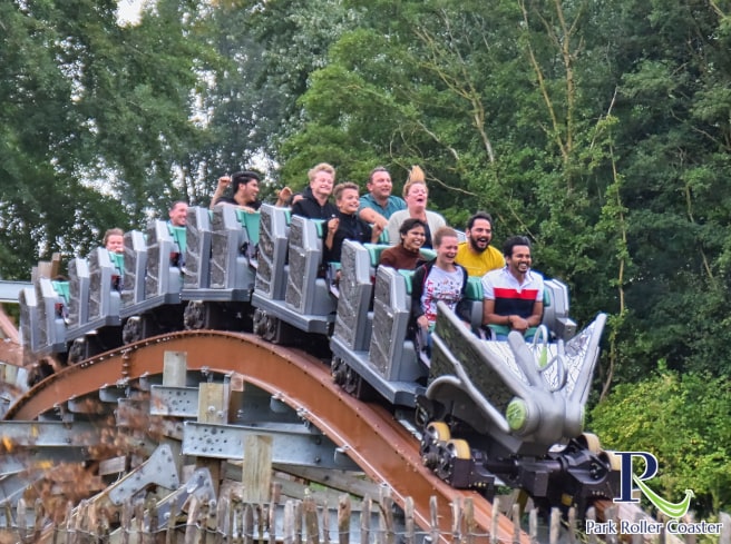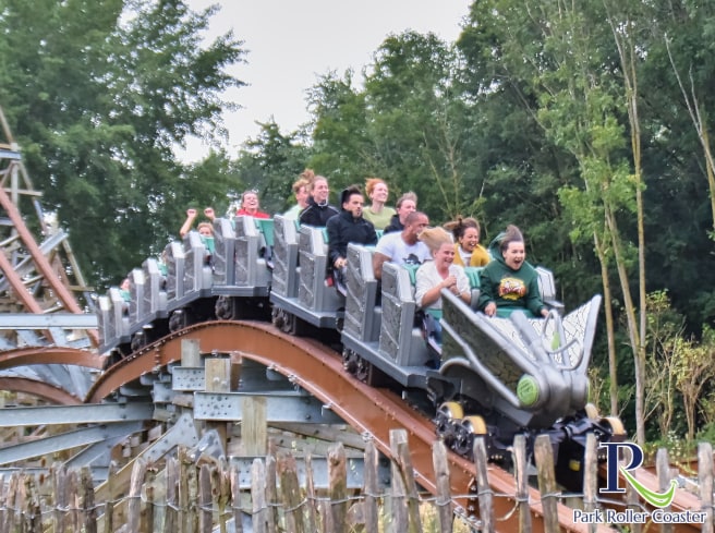 En conséquence, de nombreux passagers jugent après le trajet : "Untamed est très amusant dès le départ"et rejoignez immédiatement la file d'attente, quelle que soit sa durée. Le jour de l'ouverture, l'attente a grimpé jusqu'à 120 minutes. Après avoir quitté la gare, le train magnifiquement conçu ne se plie pas vers l'intérieur comme d'habitude dans un virage à gauche, mais vers l'extérieur à un angle de 45 degrés (Outside Banking Corner). Après l'ascenseur à chaîne raide de 40 degrés, la puissante descente de 35,4 mètres suit à une pente de 80 degrés. Le train file alors à 92 km/h sur une petite colline près du sol (Micro Bunny), ce qui ouvre le temps d'antenne permanent du plaisir de la balade. Ceci est immédiatement suivi par la meilleure manœuvre d'Untamed (Double Inverting Corner Stall), qui comprend deux inversions dans une inclinaison de 270 degrés et offre des frais généraux en apesanteur. Elle est abordée à l'extrême rive gauche, reste au-dessus de la tête pendant une courte période, puis ressort à nouveau avec une rive droite tout aussi extrême. Dans ce qui suit, Untamed brûle un feu d'artifice de temps d'antenne très fréquenté, dans lequel non seulement de petites et grandes collines sont parcourues, mais aussi dans une position inclinée violente (à l'extérieur de la colline de temps d'antenne incurvée inclinée). Les passagers ne cessent de lever les bras en l'air pour célébrer cette merveilleuse expérience de conduite, le soi-disant temps d'antenne à éjecteur. La troisième inversion sous la forme d'un step-up sous flip mérite également d'être mentionnée, tout comme la quatrième figure aérienne sous la forme d'un décrochage à 140 degrés au-dessus de l'eau, toutes deux exécutées très doucement. Le tonneau final en montée est également excellent. Dans ce qui suit, Untamed brûle un feu d'artifice de temps d'antenne très fréquenté, dans lequel non seulement de petites et grandes collines sont parcourues, mais aussi dans une position inclinée violente (à l'extérieur de la colline de temps d'antenne incurvée inclinée). Les passagers ne cessent de lever les bras en l'air pour célébrer cette merveilleuse expérience de conduite, le soi-disant temps d'antenne à éjecteur. La troisième inversion sous la forme d'un step-up sous flip mérite également d'être mentionnée, tout comme la quatrième figure aérienne sous la forme d'un décrochage à 140 degrés au-dessus de l'eau, toutes deux exécutées très doucement. Le tonneau final en montée est également excellent. Dans ce qui suit, Untamed brûle un feu d'artifice de temps d'antenne très fréquenté, dans lequel non seulement de petites et grandes collines sont parcourues, mais aussi dans une position inclinée violente (à l'extérieur de la colline de temps d'antenne incurvée inclinée). Les passagers ne cessent de lever les bras en l'air pour célébrer cette merveilleuse expérience de conduite, le soi-disant temps d'antenne à éjecteur. La troisième inversion sous la forme d'un step-up sous flip mérite également d'être mentionnée, tout comme la quatrième figure aérienne sous la forme d'un décrochage à 140 degrés au-dessus de l'eau, toutes deux exécutées très doucement. Le tonneau final en montée est également excellent. Les passagers ne cessent de lever les bras en l'air pour célébrer cette merveilleuse expérience de conduite, le soi-disant temps d'antenne à éjecteur. La troisième inversion sous la forme d'un step-up sous flip mérite également d'être mentionnée, tout comme la quatrième figure aérienne sous la forme d'un décrochage à 140 degrés au-dessus de l'eau, toutes deux exécutées très doucement. Le tonneau final en montée est également excellent. Les passagers ne cessent de lever les bras en l'air pour célébrer cette merveilleuse expérience de conduite, le soi-disant temps d'antenne à éjecteur. La troisième inversion sous la forme d'un step-up sous flip mérite également d'être mentionnée, tout comme la quatrième figure aérienne sous la forme d'un décrochage à 140 degrés au-dessus de l'eau, toutes deux exécutées très doucement. Le tonneau final en montée est également excellent.