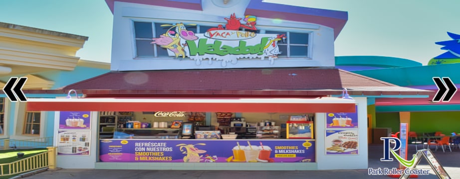 Au cœur de Cartoon Village se trouve Helados Vaca y Pollo, l'arrêt le plus agréable de votre visite au Parque Warner.