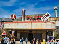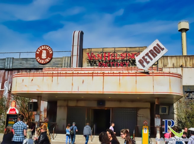 Mais avant de partir à la chasse au mal, comme pour toute attraction, vous devez d'abord surmonter la file d'attente. Ceci est conçu avec de nombreux détails à Van Helsing's Factory, donc il y a des ascenseurs et des tours à l'origine des années 50.