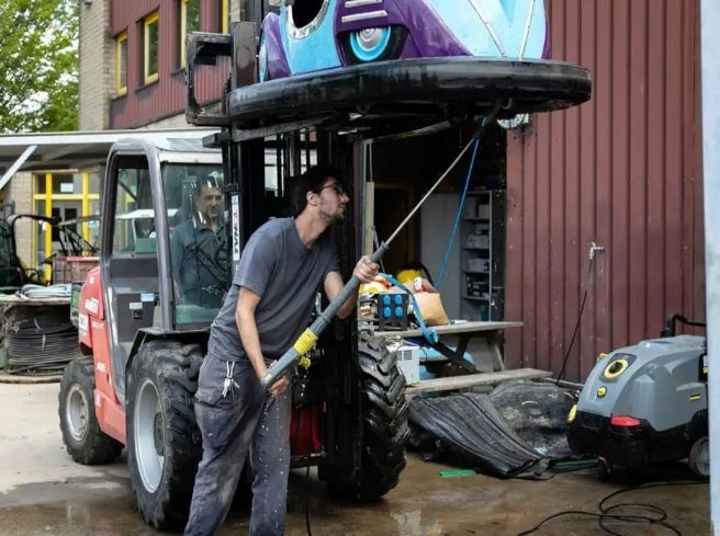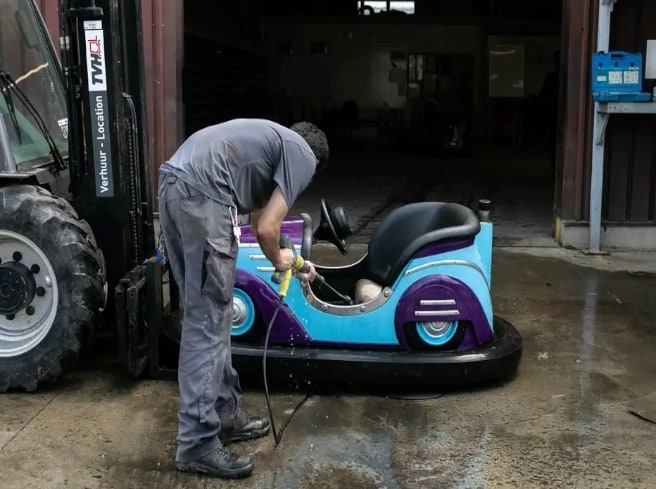 Le soleil est au rendez-vous, les allées du parc sont désertes, à peine recouvertes d’une fine couche de poussière, et des techniciens sont affairés sur les différentes attractions du parc, donnant tantôt un coup de Kärcher aux autos tamponneuses, tantôt graissant une chaîne de la Calamity Mine. Tout donne l’impression d’être au mois de mars, alors que les équipes de Walibi travaillent sur les finitions avant de lancer officiellement la saison du parc au kangourou.