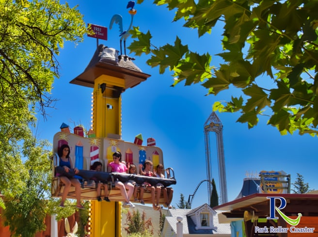 Cette tour de chute libre amusante pour les enfants est pleine d'explosifs. L'une des nombreuses tentatives de Wile E. Coyote pour capturer le Road Runner...