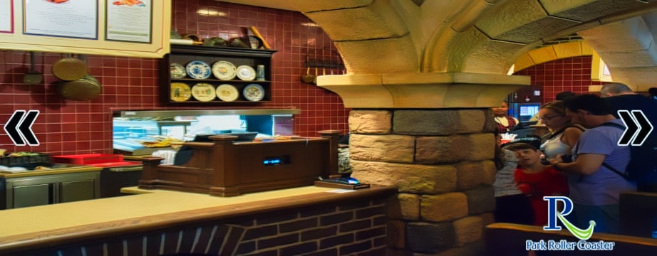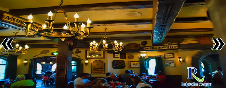 Des plats traditionnels comme le « fish and chips », de la salade et de succulents desserts vous attendent au manoir de M. Toad, dans un décor où se mêlent portraits de famille et illustrations du classique Disney Le Crapaud et le Maître d'école.