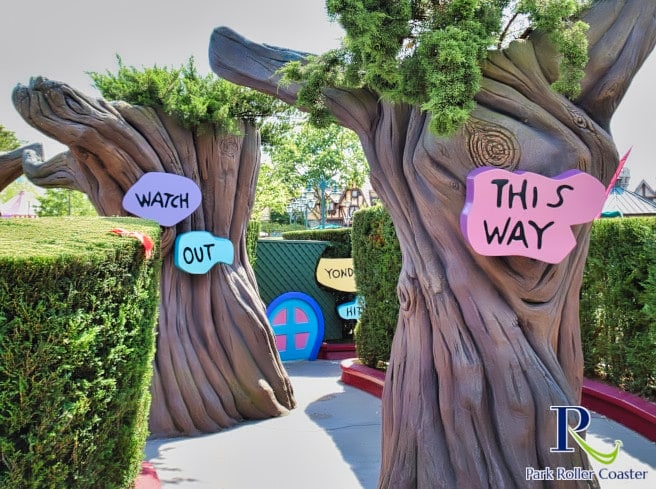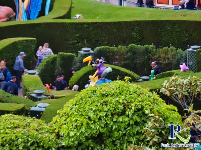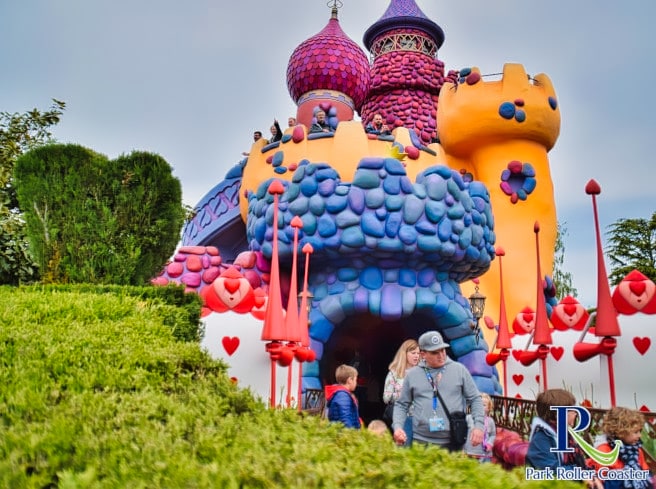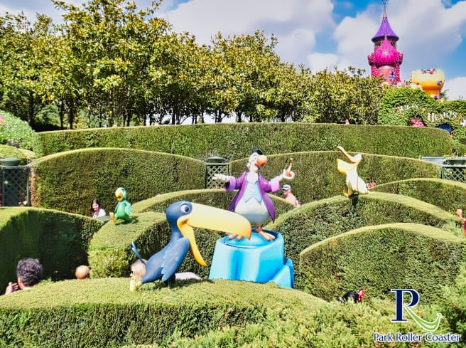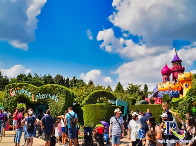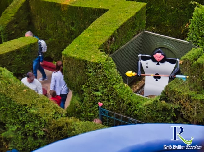 Le labyrinthe curieux d'Alice est situé à l'extrémité du parc, juste à côté de la gare Fantasyland sur le chemin de fer Disneyland. Le labyrinthe est l'un des plus grands du genre et peut demander au visiteur 20 minutes de son temps - et uniquement pour "passer à travers".