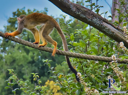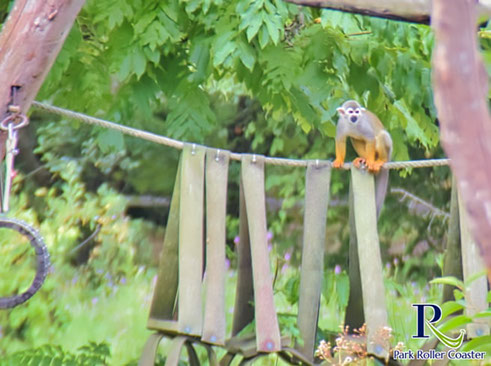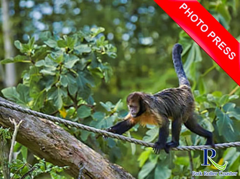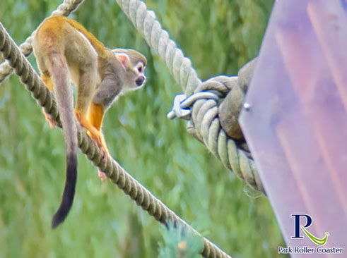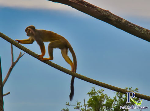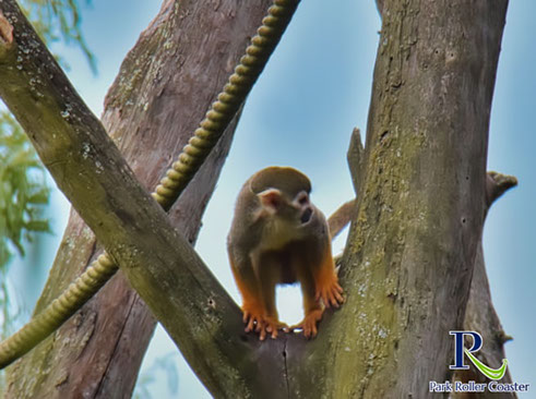 Le saïmiri jaune est un primate qui vit en compagnie d'autres primates. Et, grâce à lui, les toucans et les poissons, peuvent se nourrir.
