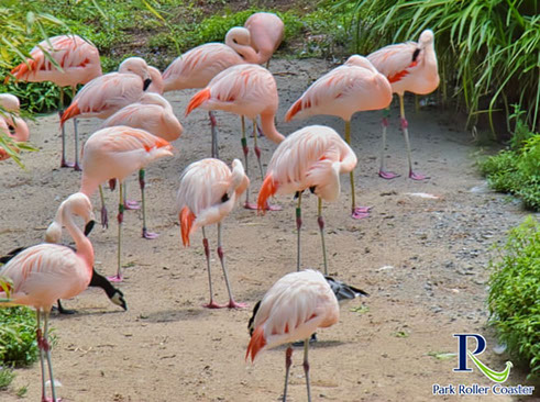 Le flamant du Chili, très sociable, passe la plupart de son temps à se lisser les plumes.