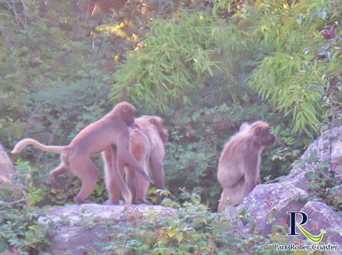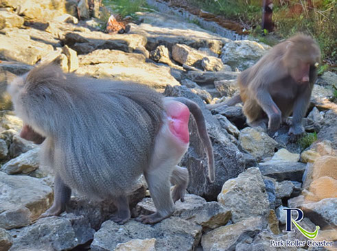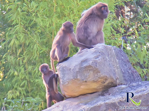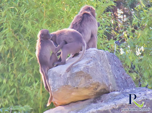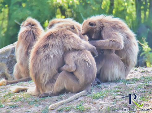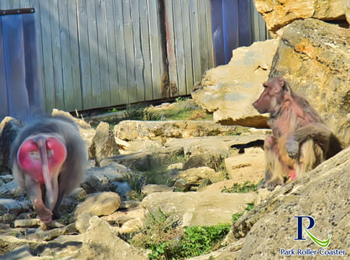 Les hamadryas vivent en bande où la femelle n'a rien a craindre. Mâles et juvéniles montent la garde pour la protéger.