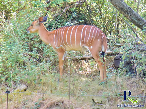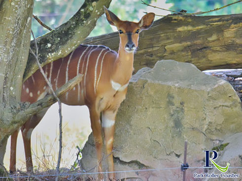 Le Nyala mâle est très reconnaissable de la femelle. Il a de grandes cornes et un pelage hérissé quand le pelage de la femelle est brun-rougeâtre.