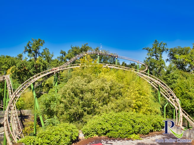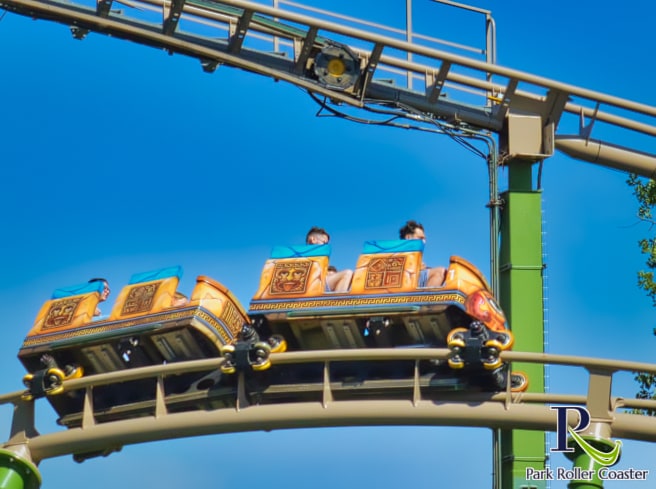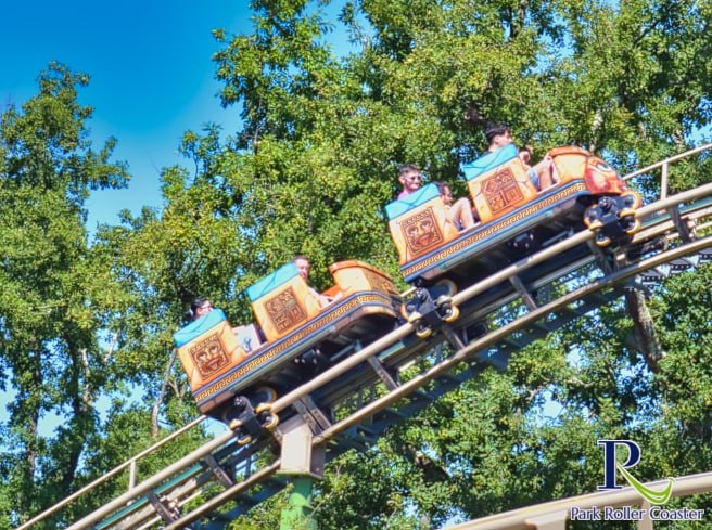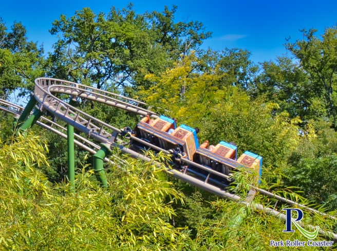 Azteka est l'une des plus grandes montagnes russes de la société française Soquet. Ce n'est pas vraiment un manège tranquille, alors ne vous laissez pas tromper par les statistiques ! Le parcours, plutôt long, vous emmène à travers des palais en ruines et des forêts rappelant les maisons aztèques. En bref : un manège à thème convaincant et dynamique !