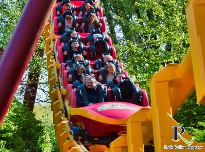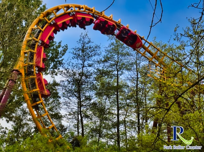 Bien sûr, les montagnes russes lui-même offre les éléments d'entraînement habituels. Avant et arrière, il passe par l'élément Boomerang et une boucle verticale.