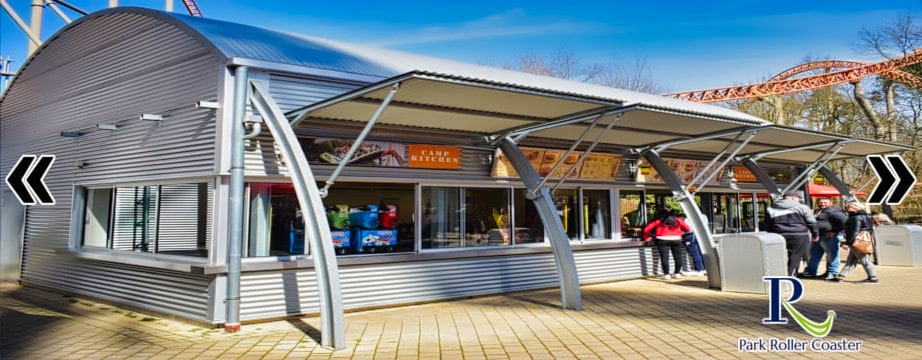 Au pied du gigantesque grand huit Expedition GeForce, les hôtes se sentent tels de véritables membres d'une expédition à Camp Kitchen.