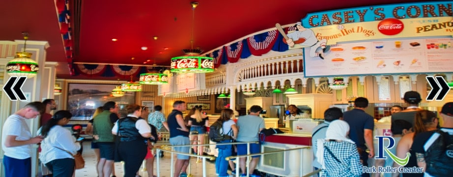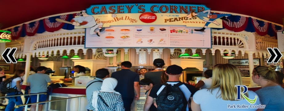 Baptisé Casey's Corner en hommage au héros du film Disney « Casey à la Batte », ce restaurant comblera votre faim avec ses copieux hot-dogs, ses frites et ses sodas rafraîchissants, le tout au son du ragtime dans une atmosphère dédiée au baseball.