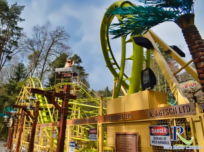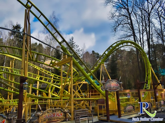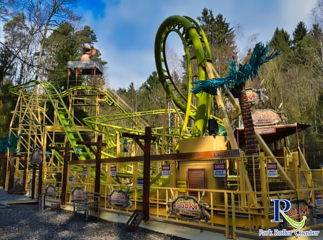Le Cobra est une montagne russe très inhabituelle et rare. Comme beaucoup d'autres montagnes russes du parc, elle a fait des tournées et a désormais trouvé sa place dans le catalogue du parc. Son emplacement, en haute forêt, a été judicieusement choisi : l'attraction, au thème vert, s'intègre parfaitement au décor et, grâce à la végétation luxuriante qui l'entoure, la forêt semble avoir été choisie comme thème. De plus, il y a toujours eu très peu d'animation ici, ce qui est une situation gagnant-gagnant.