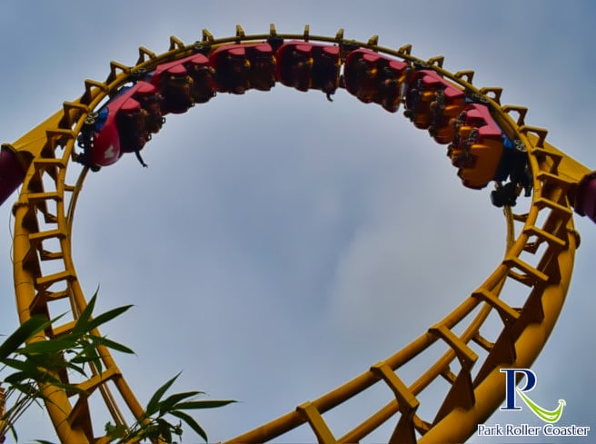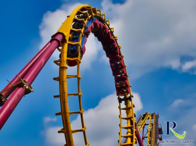 Au début, il va vers l'arrière sur une haute rampe de 36m. Cela se fait au moyen d'une voiture d'amarrage, qui pend accrocher derrière le train et le tire jusqu'à ce niveau. Une fois au sommet, cette voiture est déconnectée et vous précipiter à travers la station dans le Boomerang suivie d'une boucle verticale, puis il remonte une rampe. Sensiblement vous engagé ici dans un ascenseur de la chaîne, qui prend le train à la hauteur nécessaire pour prendre suffisamment d'énergie potentielle. A le train atteint la hauteur requise, la chaîne est brusquement chuté vers le bas et le train arrière gronde à travers les éléments viennent d'être décrits.