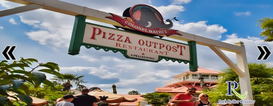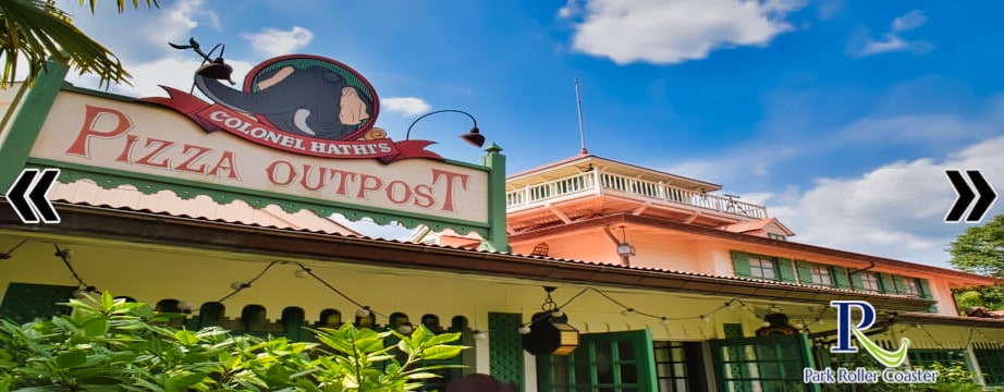 Guidez votre troupe à travers Adventureland pour rependre des forces autour d'un festin italien. Autrefois appelé Explorers Club, le Colonel Hathi's Pizza Outpost est désormais du repaire de nombreux personnages du classique Disney Le Livre de la Jungle. Vous pourrez y déguster des pizzas, des pâtes et des desserts savoureux.