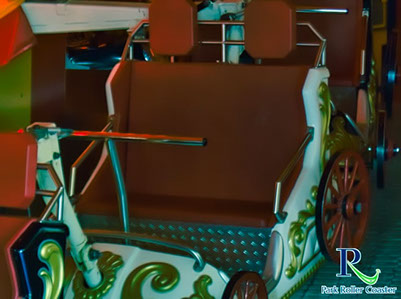 Les trains au début de montagnes russes en vedette des roues de roulement et les roues côte à friction. Ces montagnes russes