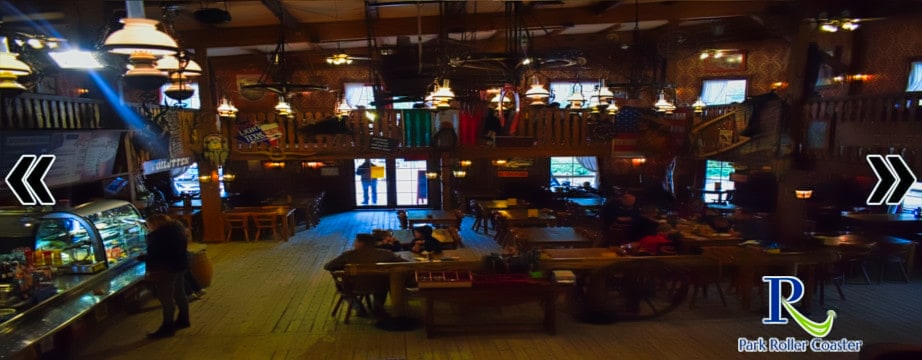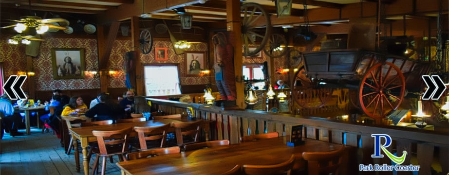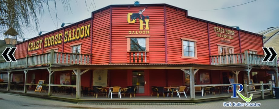 Asseyez-vous et profitez du Crazy Horse Saloon. Savourez une bonne boisson ou un délicieux hot-dog. Achetez les meilleurs souvenirs dans la sortie à droite! Crazy Horse Saloon se trouve derrière la ruée vers l'or.