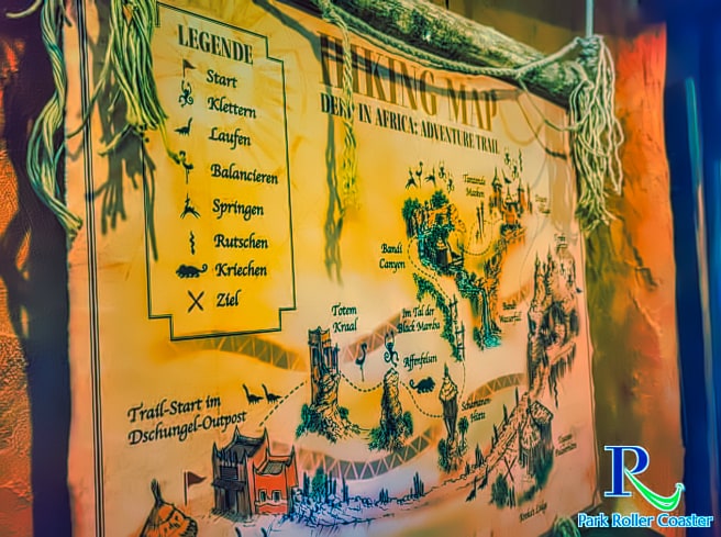 Les aventuriers qui s'aventurent sur le parcours sont mis au défi par des obstacles qui nécessitent de se brouiller, de s'équilibrer, de ramper ou de glisser. Parfois, il faut trouver son chemin au-dessus de l'eau courante, d'autres fois, un sol en verre offre une vue vertigineuse sur les montagnes russes qui défilent en contrebas du chemin. L'aventurier se concentre principalement sur les enfants, mais les adultes sont également les bienvenus sur le parcours. Tout au bout du parcours se trouve un point photo où vous pourrez prendre une photo avec le dragon mascotte de la zone thématique africaine.