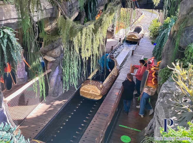 Achèvement du joli parc Plopsaland Mack Log Flume est simplement appelé De Boomstammetjes. Combien d'autres attractions, le cours d'eau vive se trouve thématiquement magnifiquement gare de Dino, mais à un niveau légèrement inférieur à celui des dernières attractions. Après tout, on trouve cette attraction déjà depuis 1989 dans l'offre de l'époque encore Meli-Park-conditionné appelé. En outre de cette époque est, le château-thématisation, qui a été révisé par le Studio 100 et adapte mieux à toute la région.