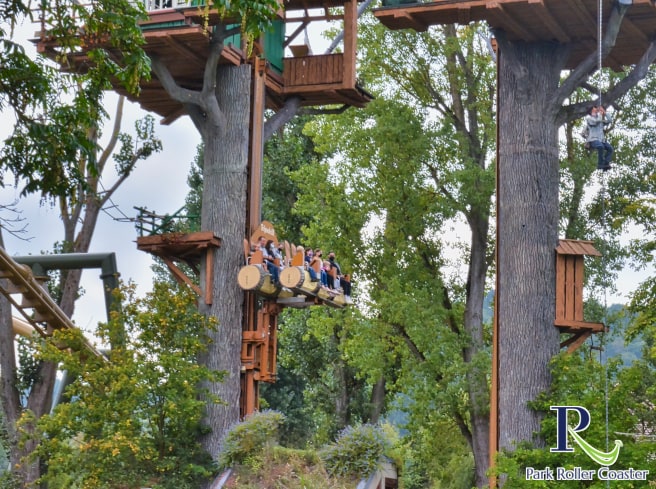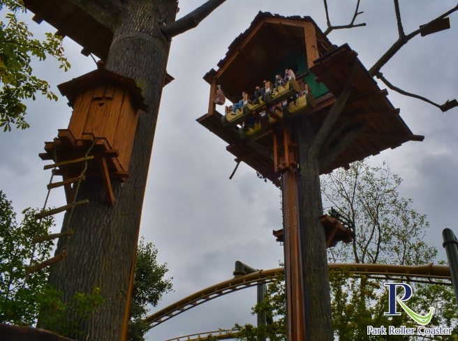 Thunderbalken est le nom de l'attraction de chute libre, dans laquelle 12 visiteurs courageux s'inclinent vers l'avant par 30 ° dans le parc d'aventure Tripsdrill, plongent à 15 mètres dans la profondeur. La hauteur plutôt petite s'avère trompeuse, car la conduite sur la barre de tonnerre peut être complètement convaincante et est toujours un défi pour les fans de sensations fortes. Dans les 2 rangées de sièges, pouvant accueillir chacun six personnes, les sièges ne sont maintenus qu'avec un support de hanche, de sorte que l'inclinaison extrêmement abrupte de la télécabine est un pur frisson. La conception de la tour, comme c'est souvent le cas dans Tripsdrill, est dans une classe à part, car la tour n'est presque pas perceptible, car en tant que cabane dans les arbres, elle est magnifiquement intégrée au reste de l'environnement.