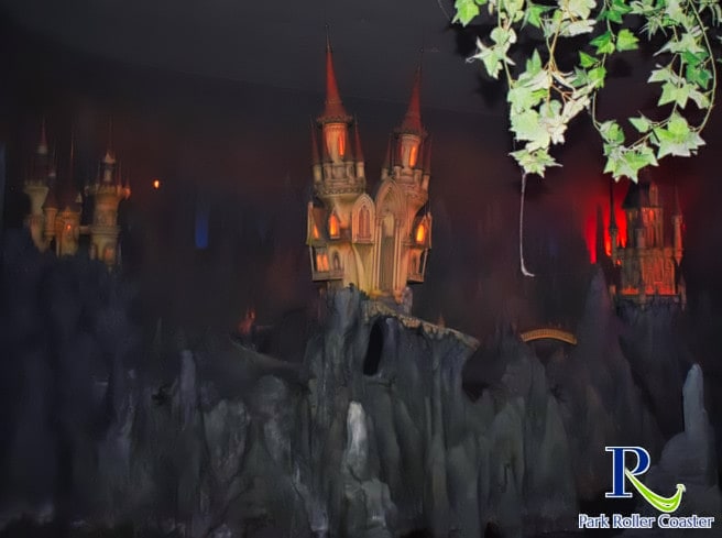 Le grand bâtiment du darkride, dans lequel se situe cette dernière scène, est magnifiquement élaboré, mais malheureusement non visible depuis le parc. Cependant, vous pouvez admirer le magnifique dôme depuis l'Europalaan (l'autoroute que vous empruntez jusqu'à Efteling) ou le parking. On reconnaît facilement le bâtiment : il se dresse juste à côté de la - non moins impressionnante tour - de Ravelijn.