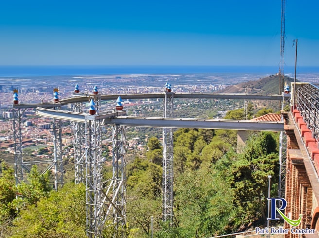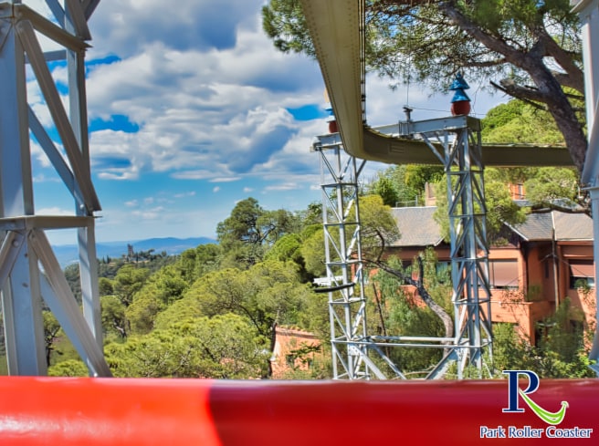 Embruixabruixes est bien visible depuis le parc, mais il faut un peu de temps pour trouver l'entrée de l'attraction. Ne laissez pas cela vous empêcher de visiter cette pièce de musée vivante. Le monorail suspendu est la plus ancienne attraction du parc, qui a ouvert ses portes en 1915. À cette époque, l'attraction s'appelait encore "Ferrocarril Aeri", qui a ensuite changé pour "Aeromagic" et finalement pour son nom actuel. L'attraction commence à l'intérieur et continue son vol au-dessus du sud-ouest du parc avec une vue spectaculaire sur la capitale catalane. Là où l'on remarque principalement les gondoles en progression constante et les supports monumentaux du parc, L'Embruixabruixes semble également plonger dans quelques tunnels le long du chemin avec une gamme d'effets étonnamment large.