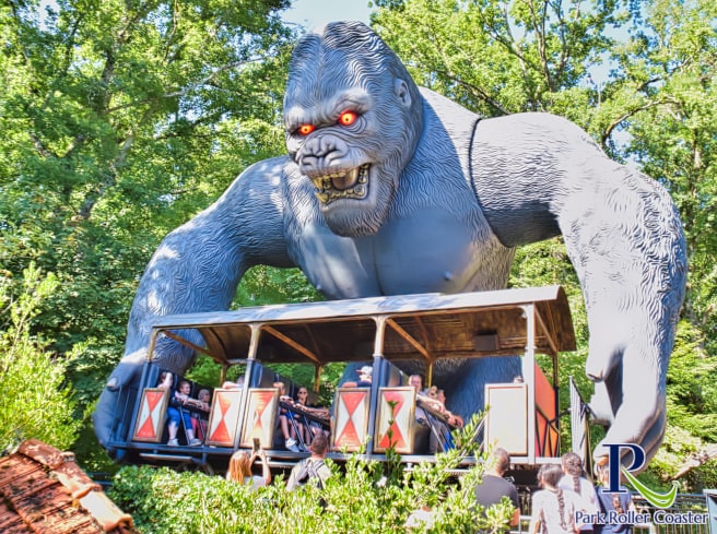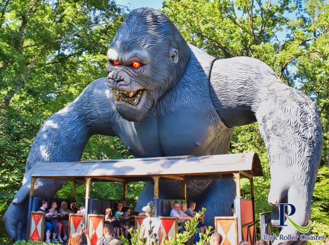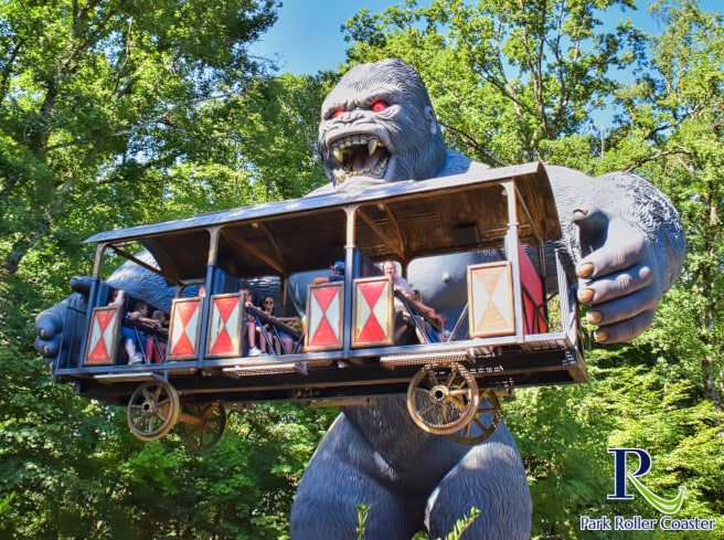 Après avoir traversé une file d'attente captivante, où vous serez témoin de la colère de King Kong à travers les trains accidentés et les maisons détruites, vous pourrez prendre place dans la nacelle qui élèvera King Kong dans les airs. Si vous êtes assez courageux, bien sûr…