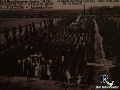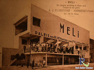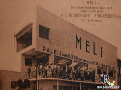 Alberic Joseph Florizoone fait construire à Adinkerke le bâtiment Meli. Le premier manège à main. Beaucoup d'intérêt pour les élocutions de A.J. Florizoone.